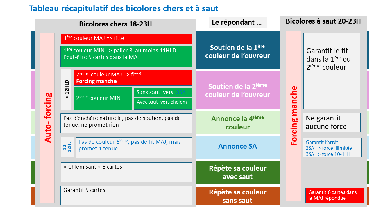 Tableau des réponses aux bicolores économiques, chers et à saut