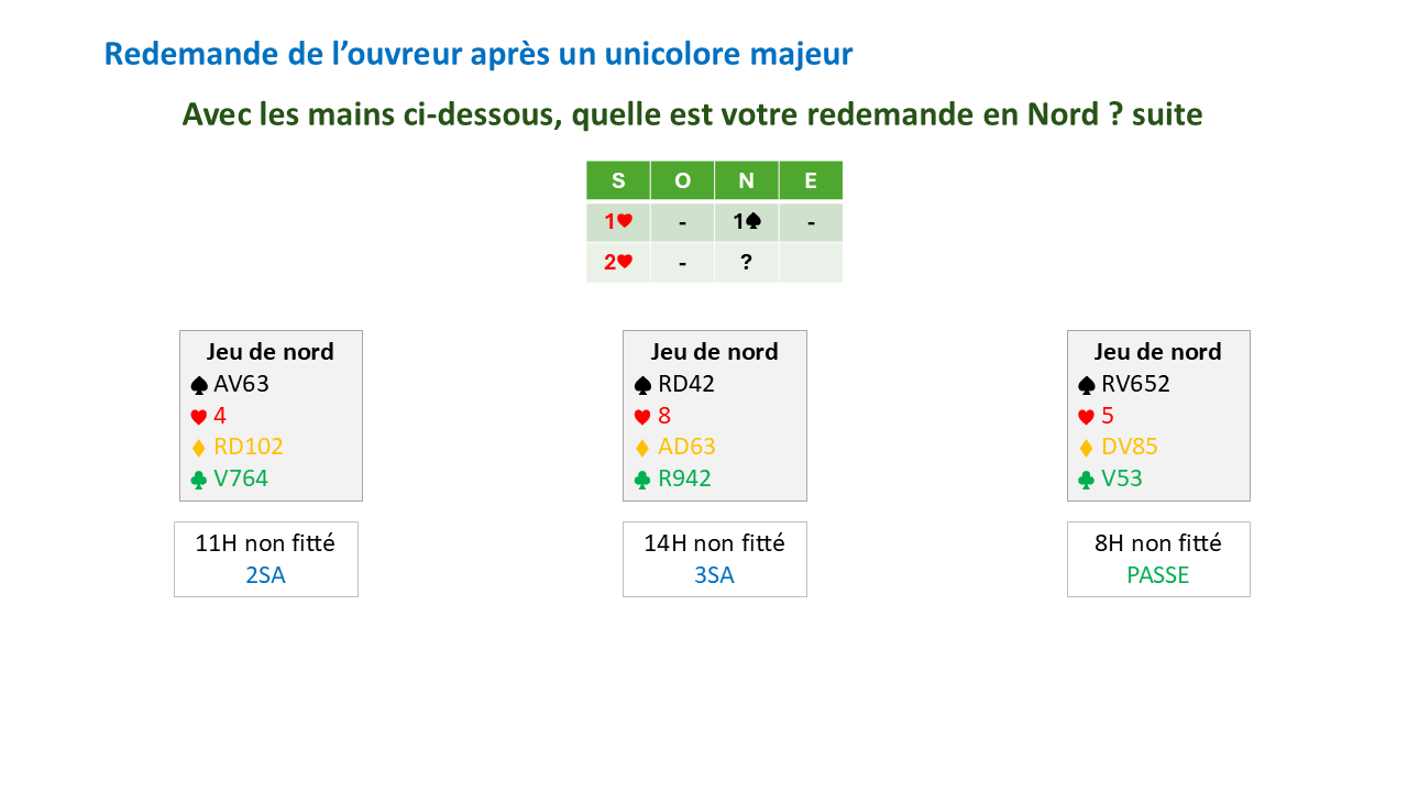 Redemande de l'ouvreur avec un unicolore majeur