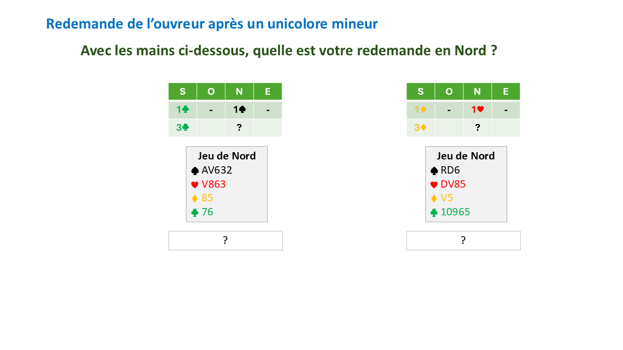 Redemande de l'ouvreur avec un unicolore mineur