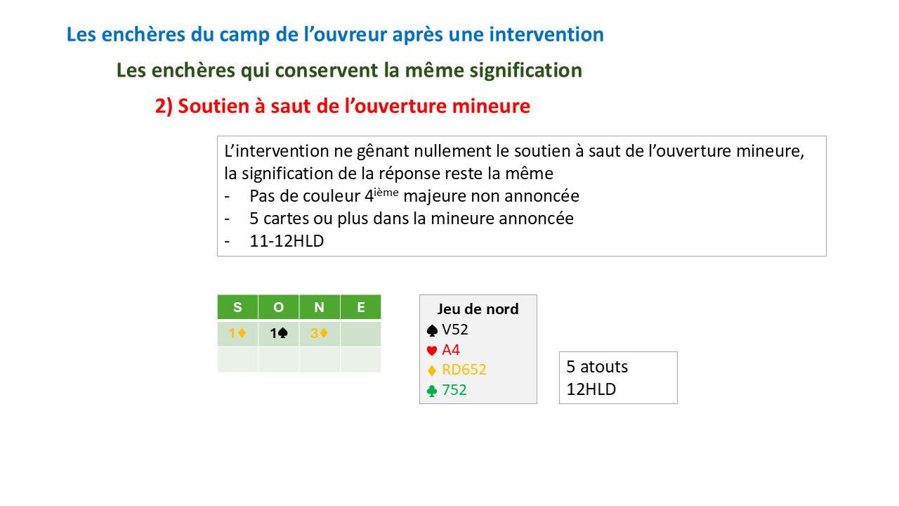 Les enchères du camp de l'ouvreur après intervention