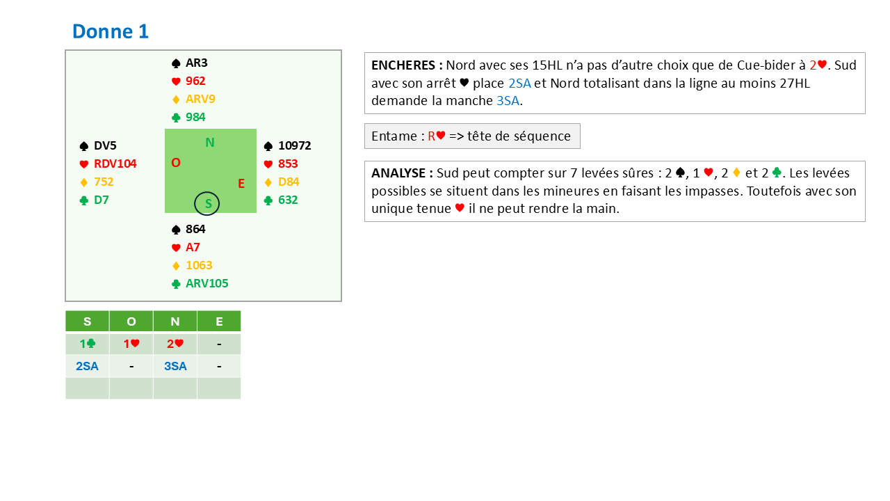 Les enchères à Sans atout et le Cue-Bid après intervention