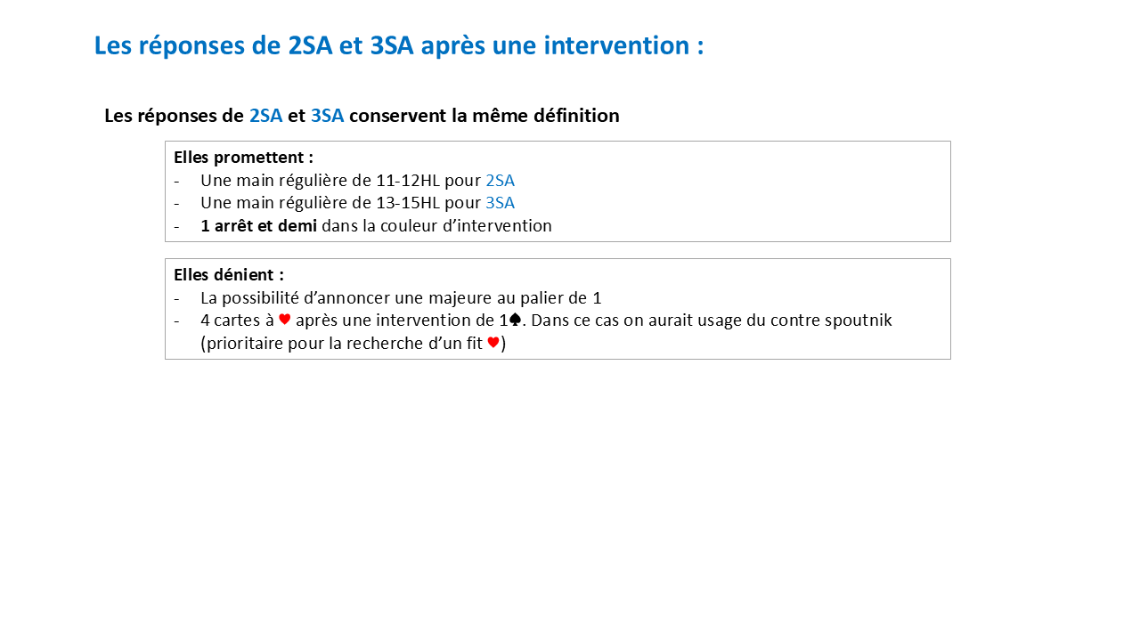 Les enchères à Sans atout et le Cue-Bid après intervention